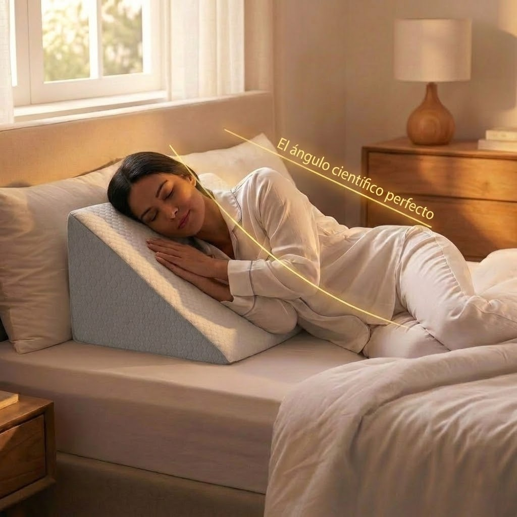 Su inclinación crea una barrera natural que protege tu esófago de la irritación constante. Tu cuerpo por fin descansa y se recupera profundamente.